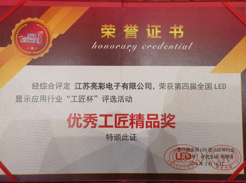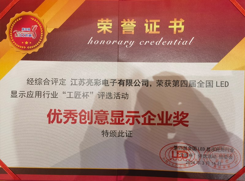 此次評選,江蘇亮彩榮獲“優(yōu)秀創(chuàng)意顯示企業(yè)獎”、“優(yōu)秀工匠精品獎”。既是對江蘇亮彩過往成績的回顧與肯定,也是對未來工作的鼓勵與鞭策。