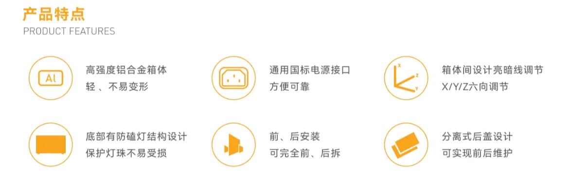 金立翔GF系列箱體,采用"X”元素和刀刃的鋒利完美結(jié)合,在不增加產(chǎn)品的厚度情況下打造超強視覺立體沖擊效果;金色V形裝飾和金色LOGO,提升了產(chǎn)品在色系上的層次感。采用鋁合金壓鑄成型工藝,軟連接拼接精度高;彈簧式緩沖的箱體把手,更具有人性化;隱藏式電源接插件,使得屏體無裸露線材,更美觀;箱體底部增加落地保護設計,有效防止燈面磕碰。